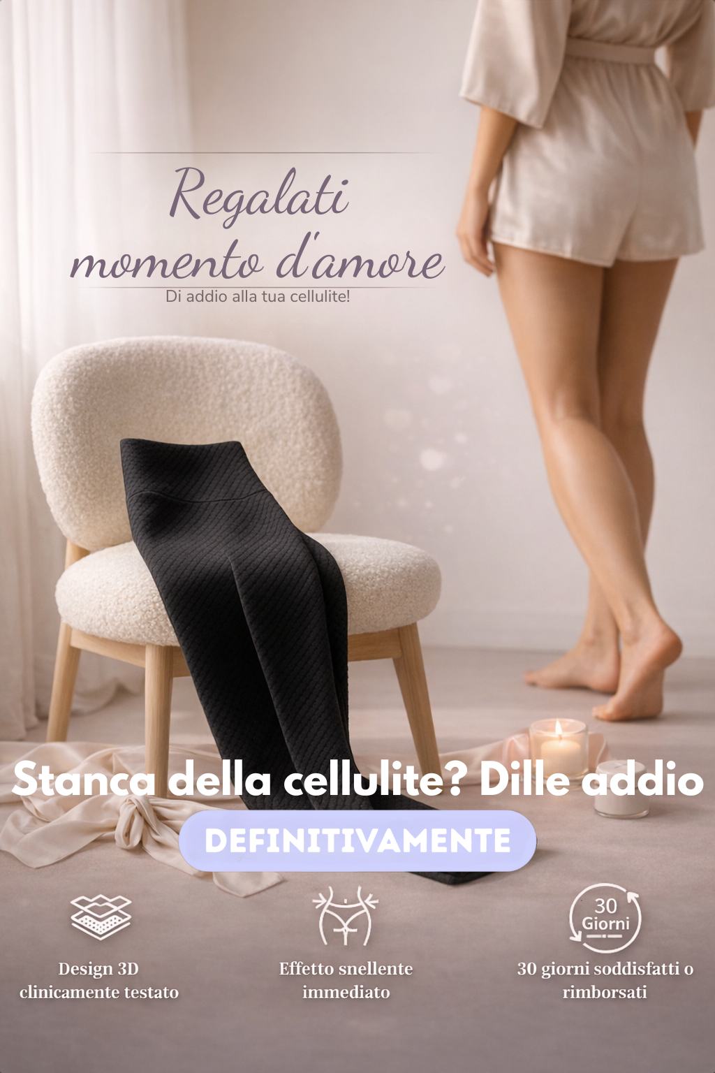 “Avevo provato creme e massaggi, senza alcun risultato. Questi leggings sono stati una rivelazione: la mia pelle è più liscia, le mie gambe più toniche. Per la prima volta dopo tanto tempo, mi sento bella e sicura di me.”